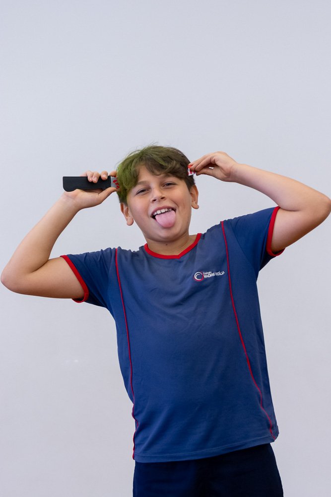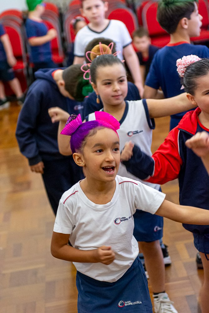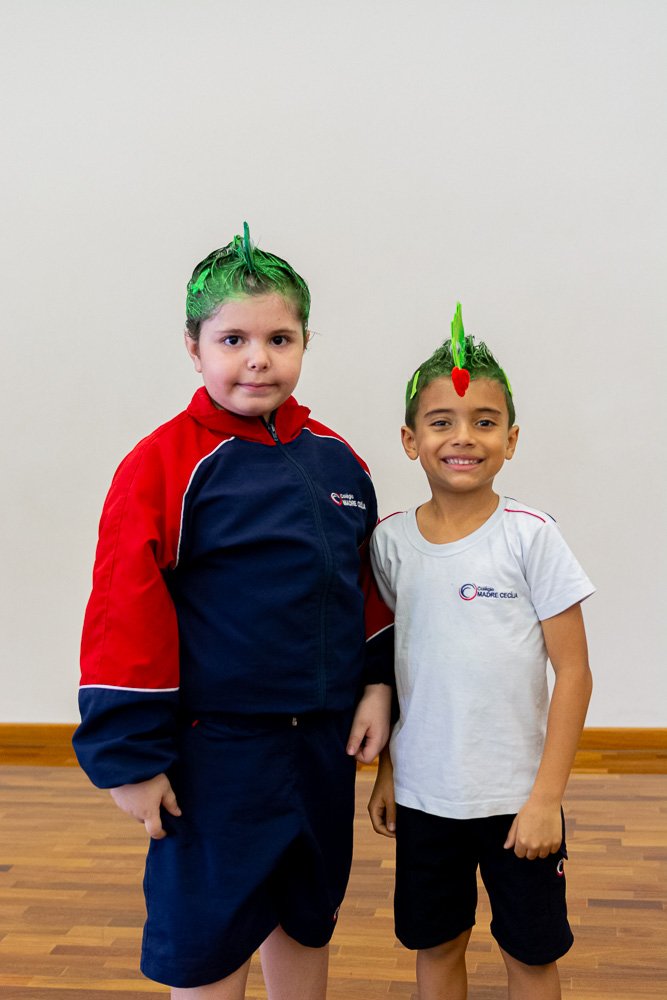 Já o Fundamental I caprichou no estilo e entrou na brincadeira com o Dia do Cabelo Maluco! Cabelos coloridos, penteados engraçados, laços, gel, objetos inusitados e muita originalidade mostraram que ser diferente é divertido demais!